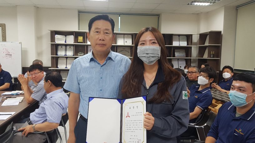 2020년 상반기 우수 모범사원으로 영업팀 박규태 과장 경영관리 이현지 대리 생산관리 김동근 사원이 수상하였습니다. 축하드립니다.
