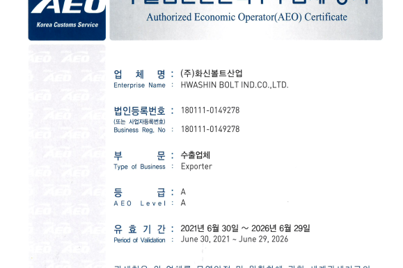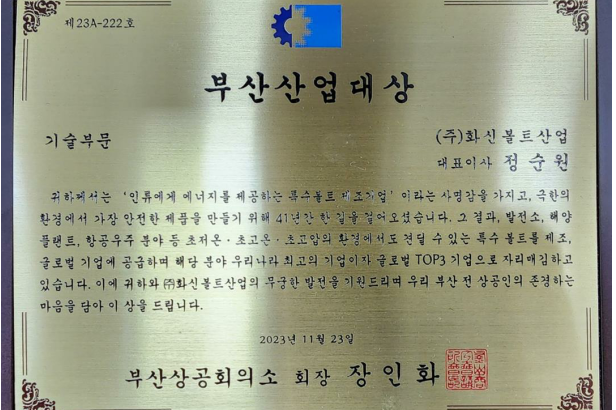 DetailsIn 2023, Hwashin Bolt Industry received the “Busan Export Grand Prize” award.