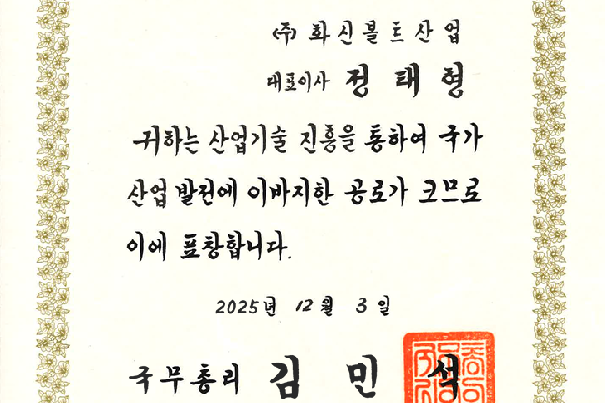 December 2025 Prime Minister’s Award for Industrial Technology Contribution
